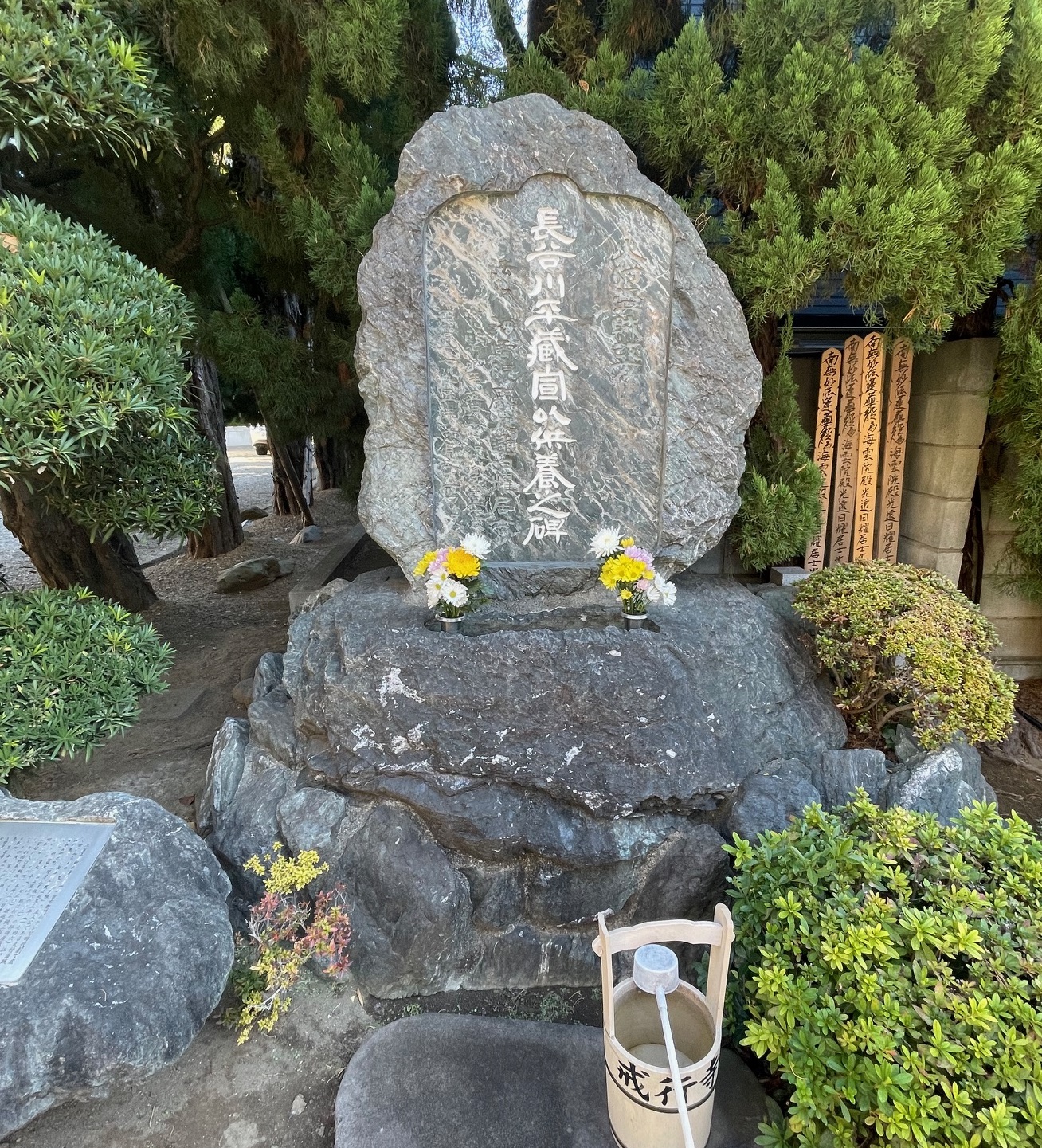 寺の境内には、火付盗賊改役として知られ、後に時代小説やドラマで“鬼平”のモデルとされた長谷川平蔵(享年50歳)の供養碑があります。かつては平蔵とその一家(父・宣雄、子・宣義など)の墓所がこの寺にありましたが、明治期に戒行寺の墓地が杉並区堀之内の共同墓地に移転された際、平蔵の墓も所在不明となり、いわゆる無縁墓扱いとなったとされています。